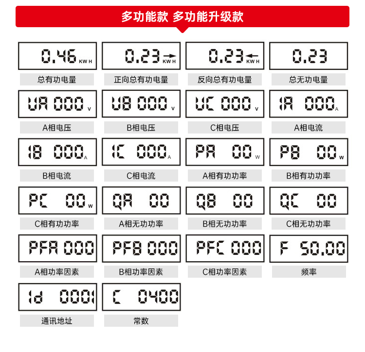 ( 1 )計(jì)量正反向有功電量,功率潮流方向自動(dòng)識(shí)別并指示,具有4費(fèi)率及總電能計(jì)量功能及總電能計(jì)功能;