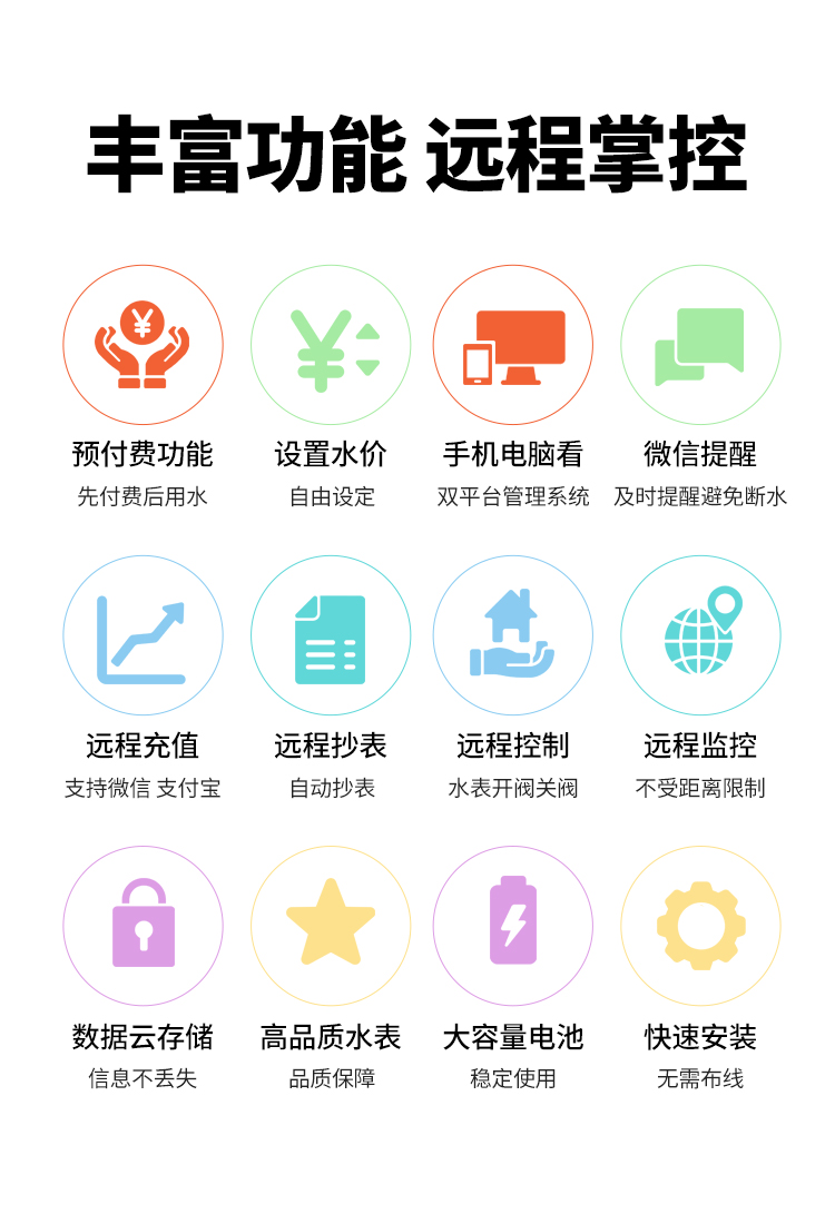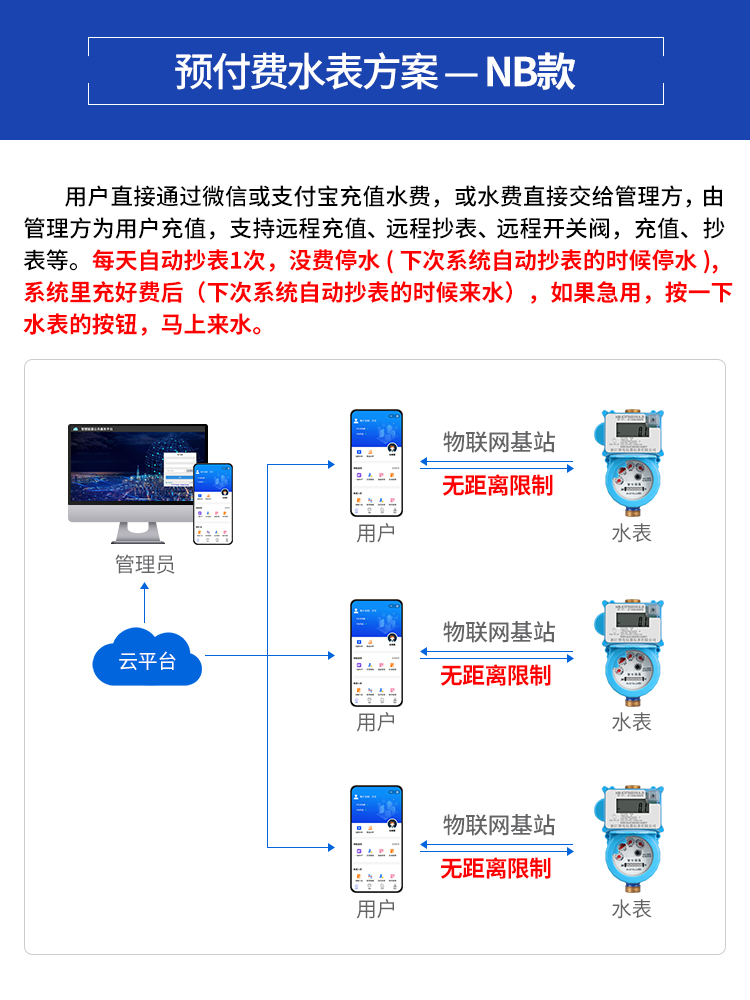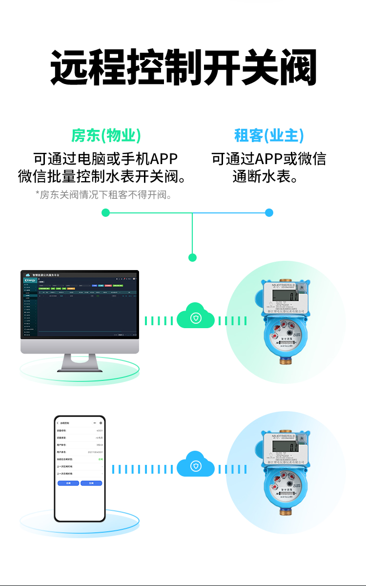 浙江智電儀器儀表的智能水電表遠(yuǎn)程管理系統(tǒng)可以完成遠(yuǎn)程抄表都能夠?qū)τ谶@種問題一一處理,不但可以完成遠(yuǎn)程抄表,還能夠完成預(yù)付費(fèi)/后付費(fèi)功能(適用微信、支付寶等繳費(fèi)方式)、遠(yuǎn)程控制停水,關(guān)閉電源、階梯水電價(jià)、預(yù)警信息提醒這些,功能齊全。而在運(yùn)用上也簡易便捷,客戶只需要借助智能手機(jī)APP或是pc端就可以操作,足不出門就可以交水費(fèi),十分便捷。