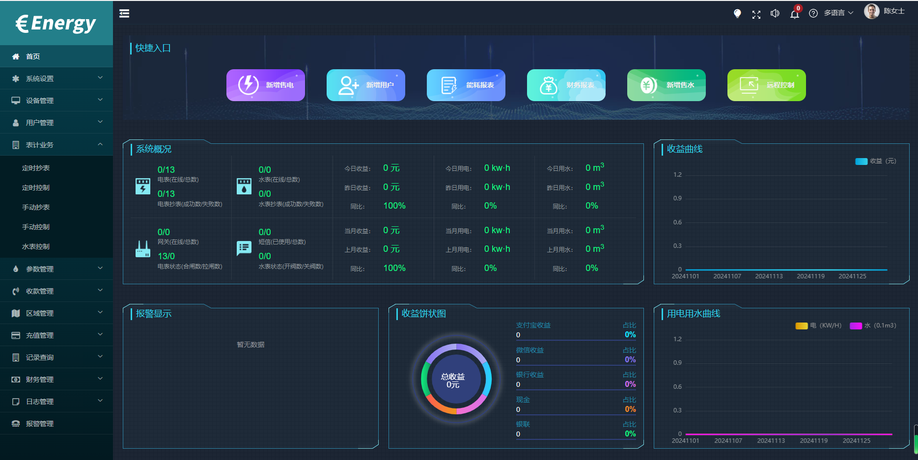 自動抄表:系統(tǒng)自動記錄每個時間段內(nèi)的用水、用電數(shù)據(jù),避免了人工抄表的繁瑣性和不準確性,費用計算:根據(jù)不同用戶的合同條款和用量,自動計算出各個用戶應交的水電費賬單生成和推送:系統(tǒng)根據(jù)計算結(jié)果自動產(chǎn)生費用賬單,并通過電子郵件、短信或移動應用等方式推送給用戶。線上支付:用戶可以直接在系統(tǒng)提供的平臺上通過網(wǎng)銀、支付寶、微信等支付工具支付水電費,簡化了繳費流程,數(shù)據(jù)統(tǒng)計與報表:系統(tǒng)提供實時數(shù)據(jù)監(jiān)控和歷史數(shù)據(jù)分析,生成各類統(tǒng)計報表。