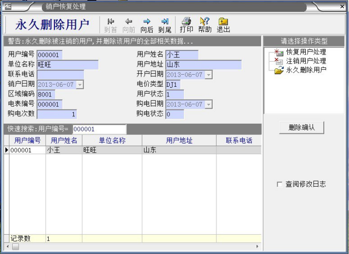 預(yù)付費(fèi)電表系統(tǒng)管理者,在平時(shí)的操作中經(jīng)常會(huì)遇到需要?jiǎng)h除用戶,小編在接下來通過圖片和文字詳細(xì)介紹這方面的操作。