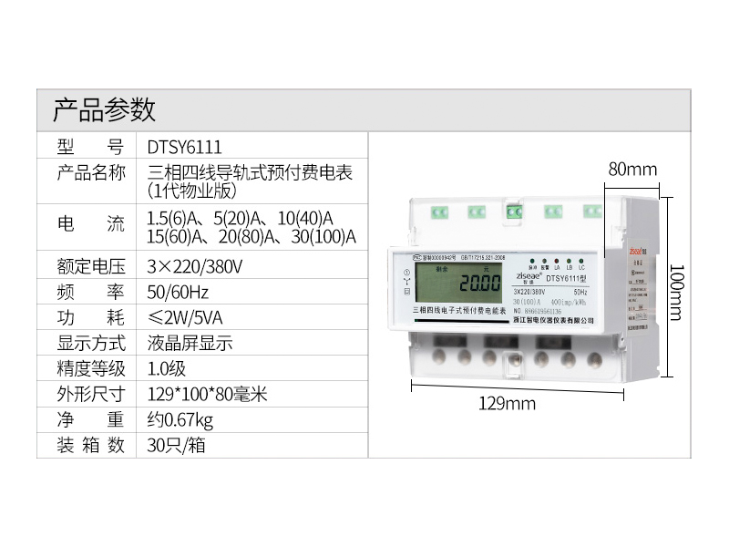 DTSY6111型三相導(dǎo)軌式預(yù)付費電能表(7P)