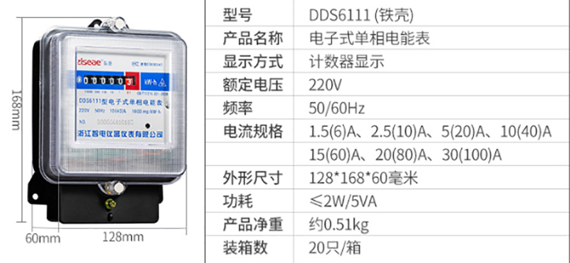 DDS6111型單相電子式電能表,由于采用集成電路和SMT制造工藝,使之測量準(zhǔn)確度,穩(wěn)定性等均得到了可靠保證.適用計量額定頻率為50Hz,額定電壓為220V的單相交流有功電能.
