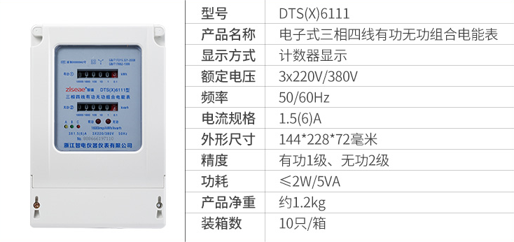 DTS(X)6111、DSS(X)6111型三相電子式有功無功組合電能表(以下簡稱電能表),是為了適應(yīng)電網(wǎng)改造設(shè)計(jì)開發(fā)的有功、無功組合式電能表。它具有較高的準(zhǔn)確度和可行性。本產(chǎn)品制造標(biāo)準(zhǔn)符合GB/T17215.321-2008《1級(jí)和2級(jí)靜止式交流有功電能表》、GB/T17215.323-2008、DL/T614-1997《多功能電能表》、DL/T645-1997《多功能電能表通信規(guī)約》等電力行業(yè)標(biāo)準(zhǔn)對(duì)三相靜止式電能表全部技術(shù)要求,是對(duì)需要進(jìn)行無功電量考核的企業(yè)、變電站或電廠理想的選擇,亦適合輸配電或配網(wǎng)自動(dòng)化用表。本產(chǎn)品可供計(jì)量參比頻率為50Hz電網(wǎng)中的三相交流有功和無功電能,并能進(jìn)行正、反向電能計(jì)量和紅外及RS485通訊功能。其特點(diǎn)是精度高、可靠性好、寬負(fù)荷、低功耗、誤差曲線平直、抗干擾能力強(qiáng)。