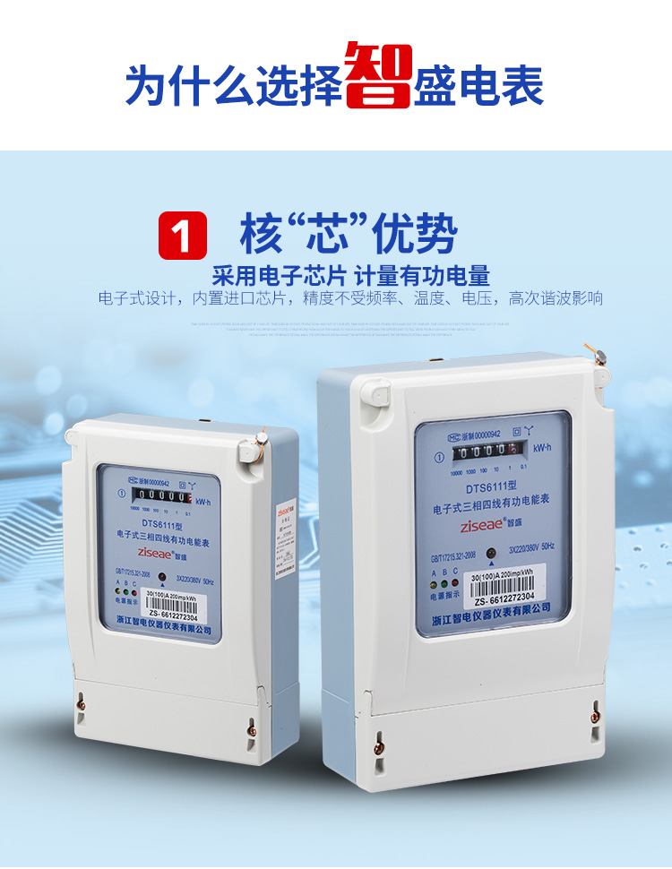DTS6111型三相四線和DSS6111型三相三線兩種型號三相電子式有功電能表,內(nèi)部運(yùn)用了集成電路在經(jīng)過SMT工藝生產(chǎn)制作而成。結(jié)構(gòu)設(shè)計(jì)合理,制作工藝先進(jìn)。跟傳統(tǒng)的電能計(jì)量表對比,三相電子式有功電能表的測量準(zhǔn)確度高、性能可靠、節(jié)能。