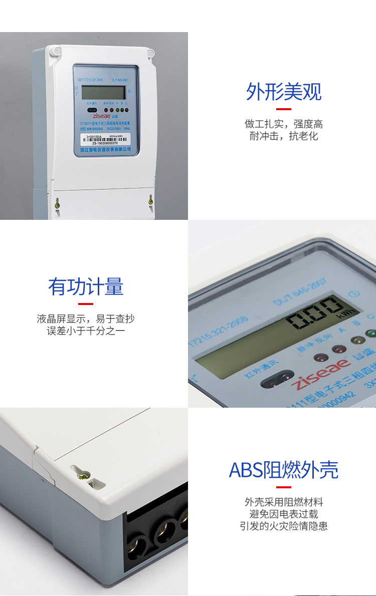 DTS6111型三相四線和DSS6111型三相三線兩種型號(hào)三相電子式有功電能表,內(nèi)部運(yùn)用了集成電路在經(jīng)過SMT工藝生產(chǎn)制作而成。結(jié)構(gòu)設(shè)計(jì)合理,制作工藝先進(jìn),跟傳統(tǒng)的電能計(jì)量表對(duì)比,三相電子式有功電能表的測量準(zhǔn)確度高、性能可靠、節(jié)能。