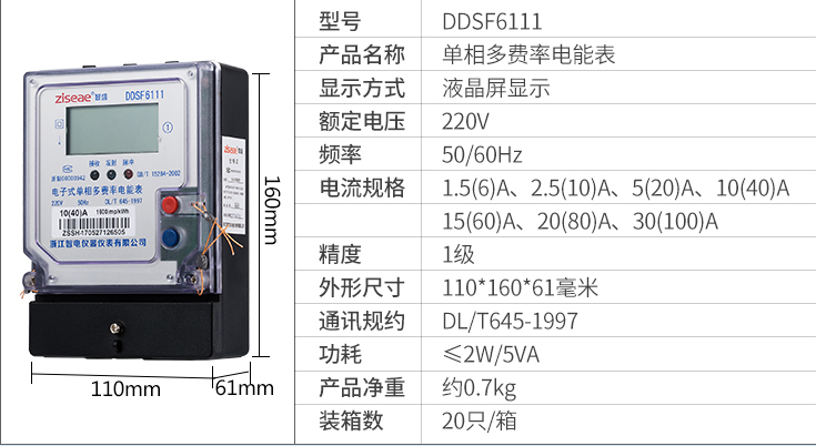 DDSF6111單相電子式多費率電能表,采用單片機(jī)處理系統(tǒng)設(shè)計而成,具有電路簡單、可靠性高、成本低等優(yōu)點。該產(chǎn)品軟件、硬件、結(jié)構(gòu)設(shè)計技術(shù)先進(jìn),計量精度高,結(jié)合單片機(jī)資源,實現(xiàn)電能分時計量,具有紅外及RS-485通信功能,抗干擾、防攻擊性能好,工作溫度范圍寬,能長期穩(wěn)定可靠工作。該產(chǎn)品各項性能指標(biāo)符合國家GB/T 17215-2002《1級和2級靜止式交流有功電能表》、GB/T 15284-2002《復(fù)費率(分時)電能表特殊要求》、DL/T 645-1997《多功能電能表通信規(guī)約》等標(biāo)準(zhǔn)的技術(shù)要求。
