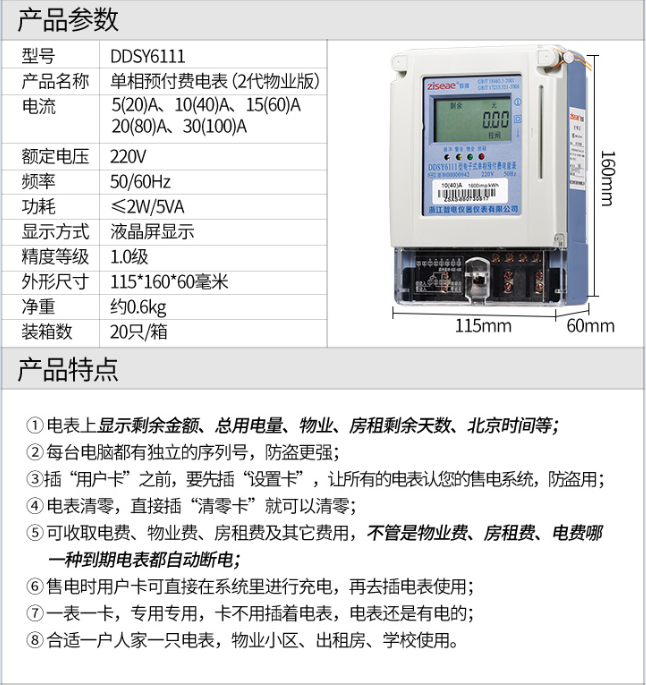 主要特點(diǎn):應(yīng)用計(jì)算機(jī)管理,先購電后用電;在額定電流范圍內(nèi)能限制使用功率(由供電部門限定);一表一卡,專卡專用,失卡不失電,補(bǔ)卡再用;電卡能雙向傳遞數(shù)據(jù),能自動斷電告警用戶購電;電量為零時,自動拉閘斷電;并具有一定的防竊電軟件設(shè)計(jì)等。