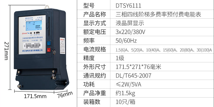 DTSY6111型三相四線階梯多費率預付費電能表(以下簡稱“儀表”)是根據(jù)居民實際用電狀況所設計、制造。它具有較高的準確度和可靠性。