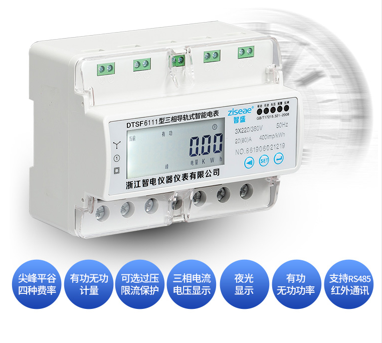 三相導(dǎo)軌式多費(fèi)率電能表DTSF6111-7系我公司采用微電子技術(shù)計(jì)量電能,采用進(jìn)口集成電路,應(yīng)用數(shù)字采樣處理技術(shù)及SMT工藝等先進(jìn)技術(shù)研制開發(fā)的電子式電能表。能直測(cè)量電能計(jì)量中正向有功電能,7位LCD顯示器顯示有功用電量,具有可靠性好、體積小、重量輕、外表美觀、工藝先進(jìn)、35mmDIN標(biāo)準(zhǔn)導(dǎo)軌式安裝等特點(diǎn):并具有良好的抗電磁干擾、低自耗節(jié)電、精度高、高過載、穩(wěn)定性強(qiáng)、防竊電、壽命長(zhǎng),液晶屏幕上可顯示當(dāng)前總電量,無功電量,尖峰平谷的電量,電流,電壓,功率,功率因素,頻率,支持RS485 DL/645--2007或MODBUS通訊規(guī)約。