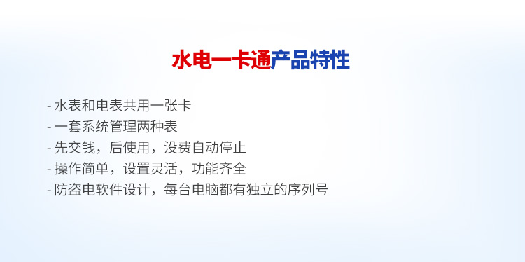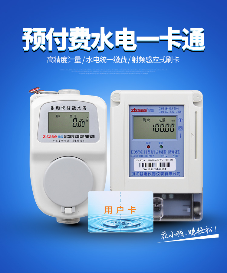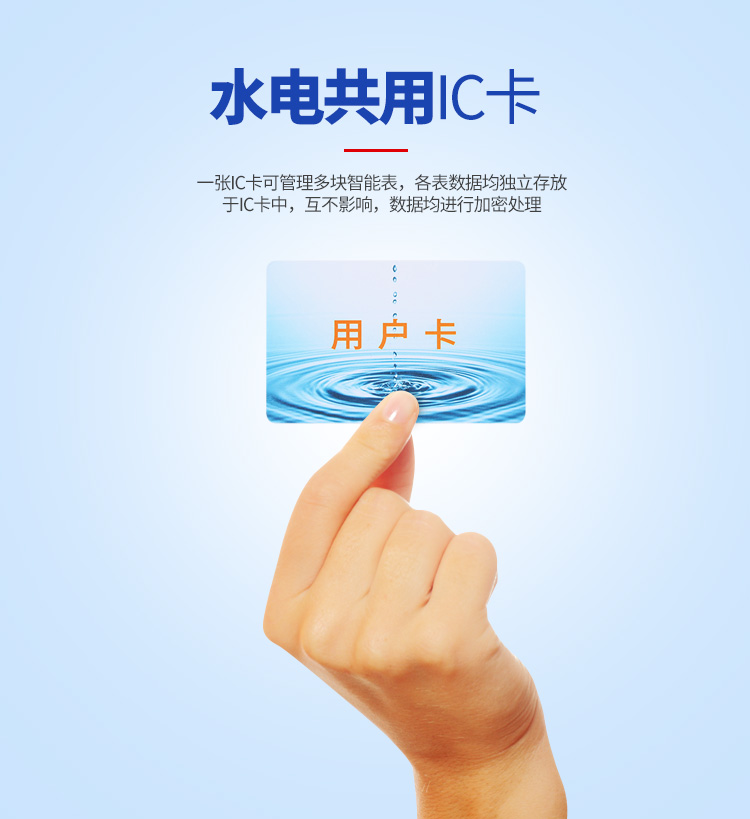 我公司生產(chǎn)的智能水表與電能表實(shí)現(xiàn)一卡通,用戶(hù)只需一張卡,即可同時(shí)管理家中所用的電表、水表。