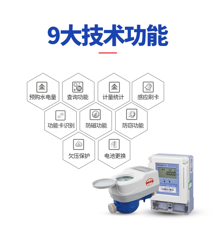 1、概述預(yù)付費(fèi)水表是以旋翼式水表為基表,由干簧管取信裝置、低功耗電控閥門(mén)、微電腦控制系統(tǒng)、射頻卡信息系統(tǒng)集合而成的智能水表。該產(chǎn)品改變了傳統(tǒng)的用水收費(fèi)方 式,由“先用水后交費(fèi)”變?yōu)椤跋冉毁M(fèi)后用水”, 每次售水收款都有記錄,解決了“收費(fèi)難、賬目亂”這兩個(gè)水費(fèi)管理工作中的難題。有遠(yuǎn)傳抄表功能的預(yù) 付費(fèi)水表還可實(shí)時(shí)統(tǒng)計(jì)用水?dāng)?shù)量,為水費(fèi)結(jié)算提供依據(jù)。產(chǎn)品符合國(guó)家標(biāo)準(zhǔn)GB/T778-2007《封閉滿管道中水流量的測(cè)量、飲用冷水水表和熱水水表》的全部技術(shù)要求。